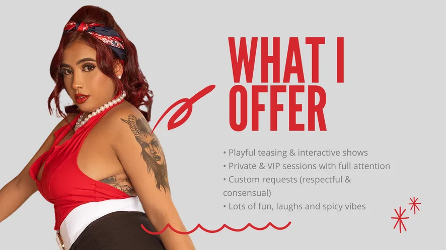Ahegao, A Cuatro, Azotes, Dedos, Cameltoe, Dirty Talk, Fetichismo de Pies, Masturbación con los Pechos, Paja, Dildo o Vibrador, Estriptis, Mamada, Masturbación, Orgasmo, Toples, Tacones, Twerking, Show con Aceite, Juguetes para Pezones, Fetiche de saliva, Anal, Baile Erótico, Del Culo a la Boca, Garganta Profunda, Juguetes Anales, Juguetes Sexuales, Sexo Duro, Squirting, Vaquera, Amas, Cock Rating, Fumar